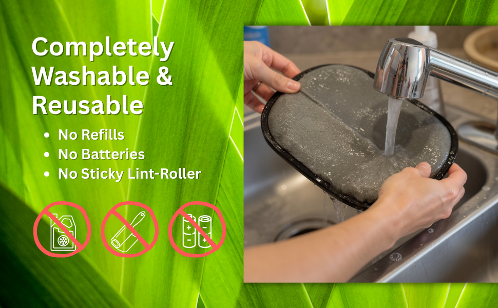 Just remove the collected fur with your hand. Then rinse the glove under water. It’s reusable and ready to go again in seconds.